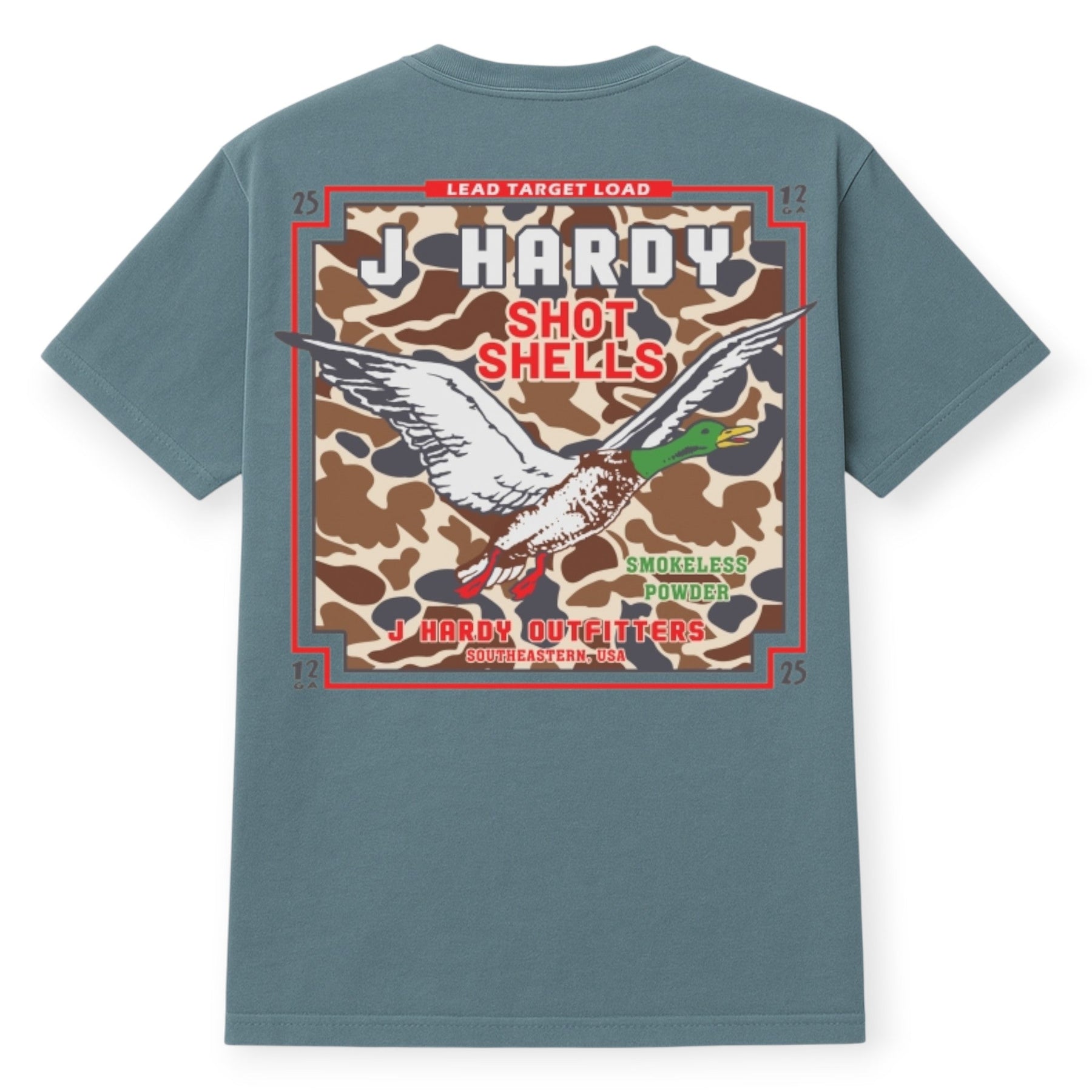 A throwback to the golden age of the hunt. The J Hardy Outfitters Blast From the Past Tee brings vintage ammo-box artwork back to life with bold camo, retro lettering, and a flying mallard front and center. Inspired by the timeless grit of southern waterfowl hunts, this tee combines old-school style with all-day comfort. It’s a nod to the days when duck blinds were built by hand, mornings started before dawn, and every shot counted.